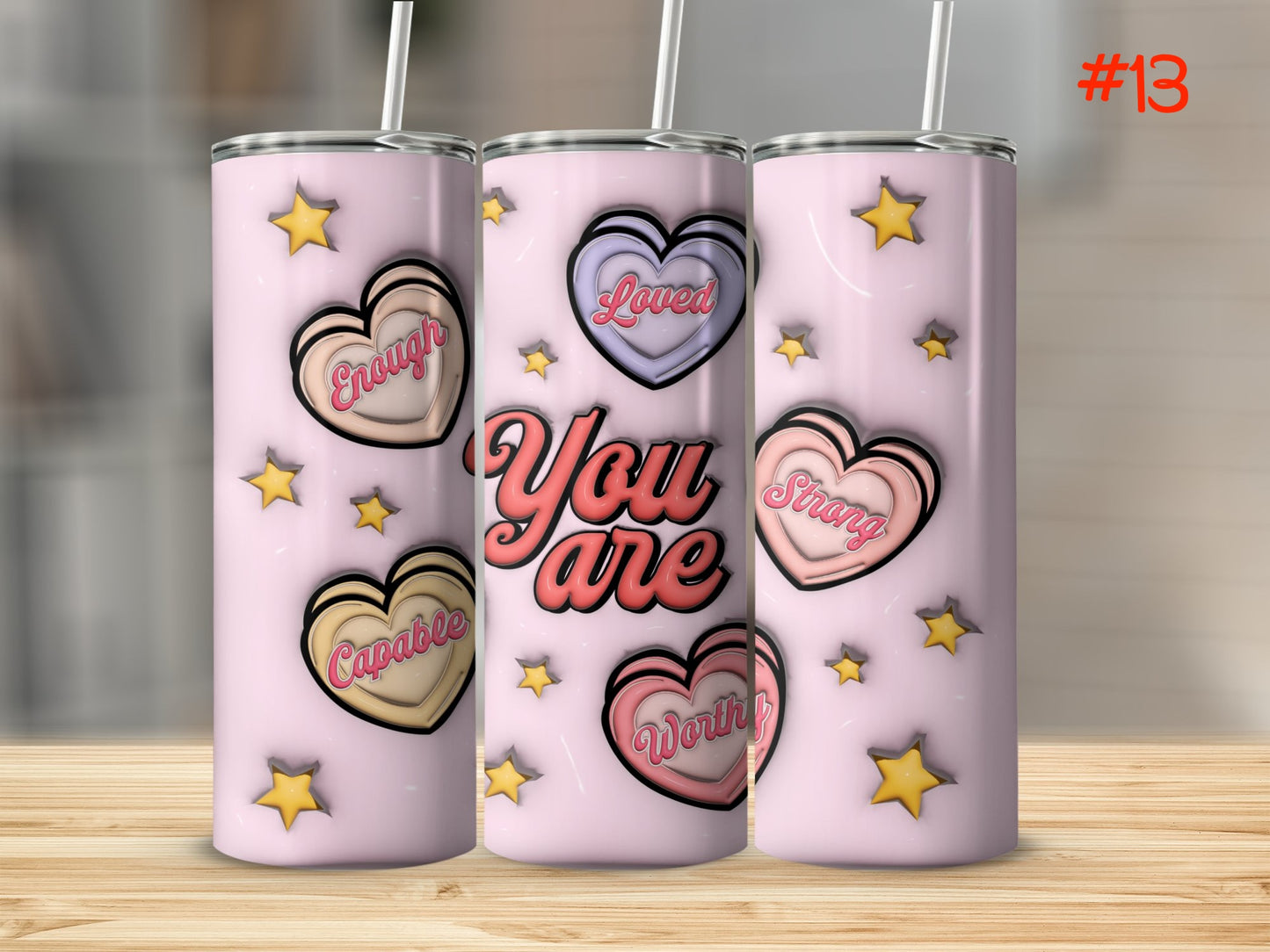 Enjoy your new Valentine's Tumbler, Choose 20oz or 30oz Skinny Tumblers, make great Valentines, Birthday, Christmas, Father's Day, Mother's Day or Just Because Gifts for everyone.